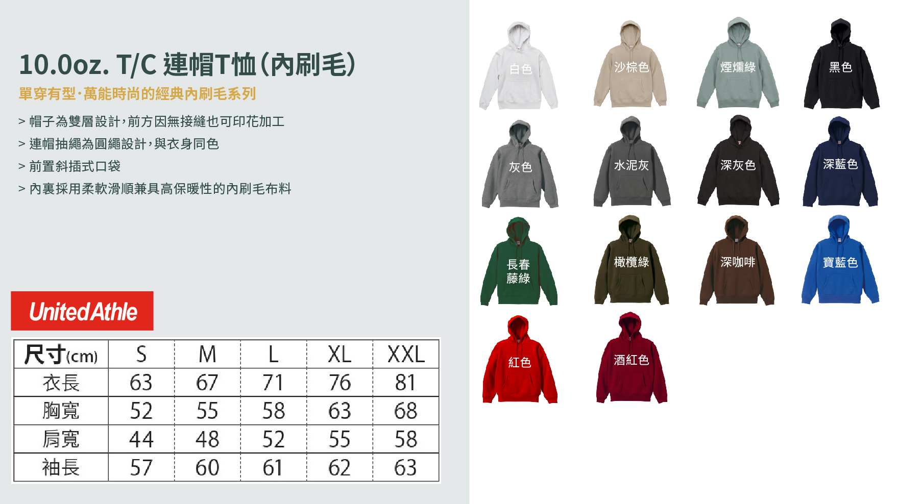 United Athle10.0oz. T/C 連帽T恤(內刷毛)