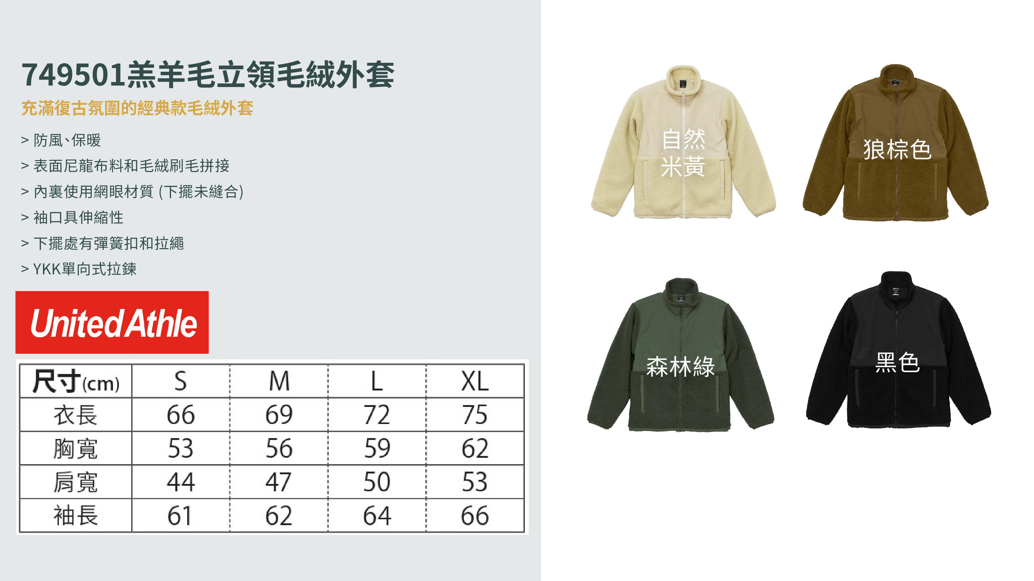 |最後現貨!|United Athle 749501羔羊毛立領毛絨外套