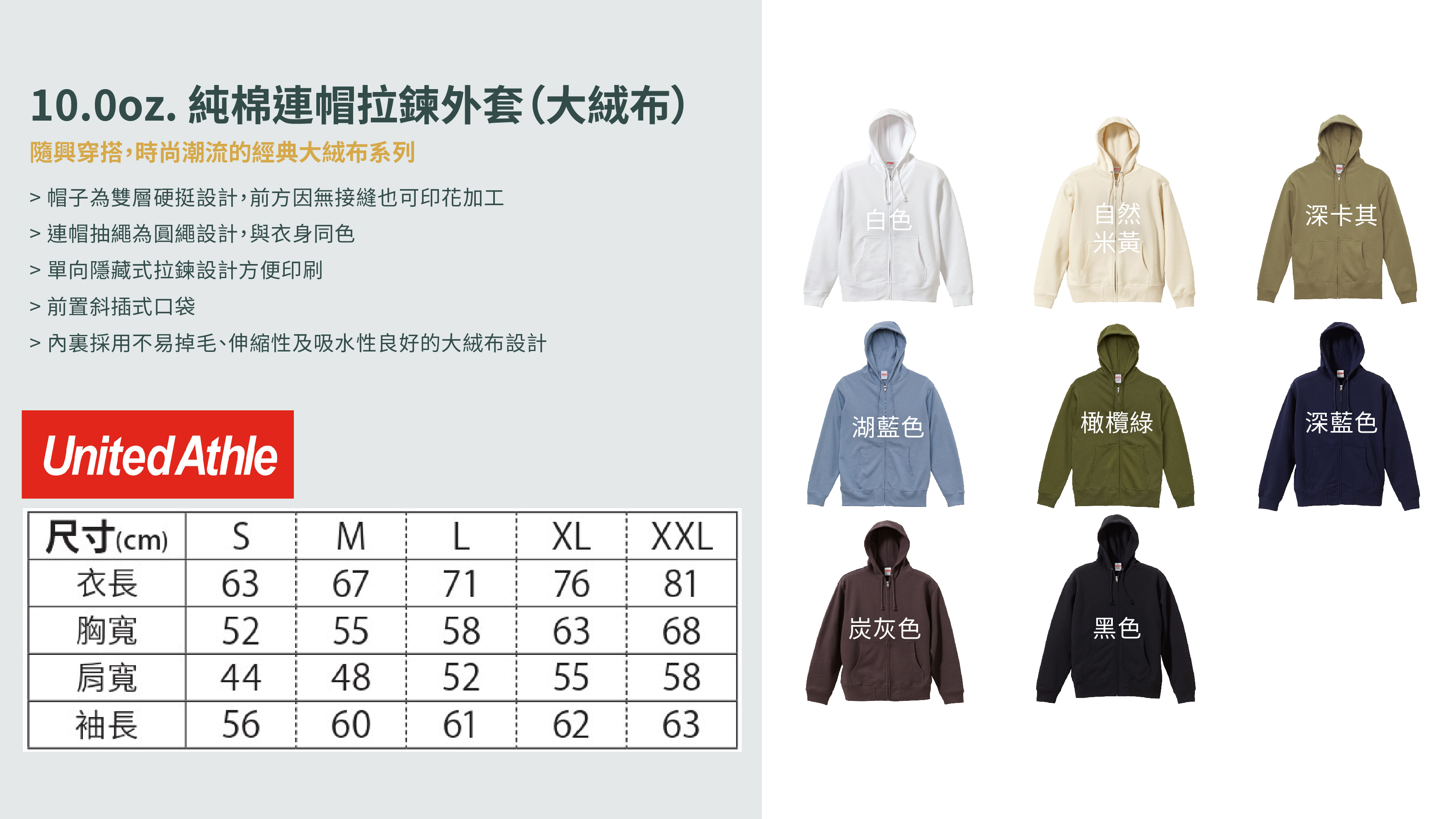 United Athle - 521301純棉連帽拉鍊外套 - 10.0oz
