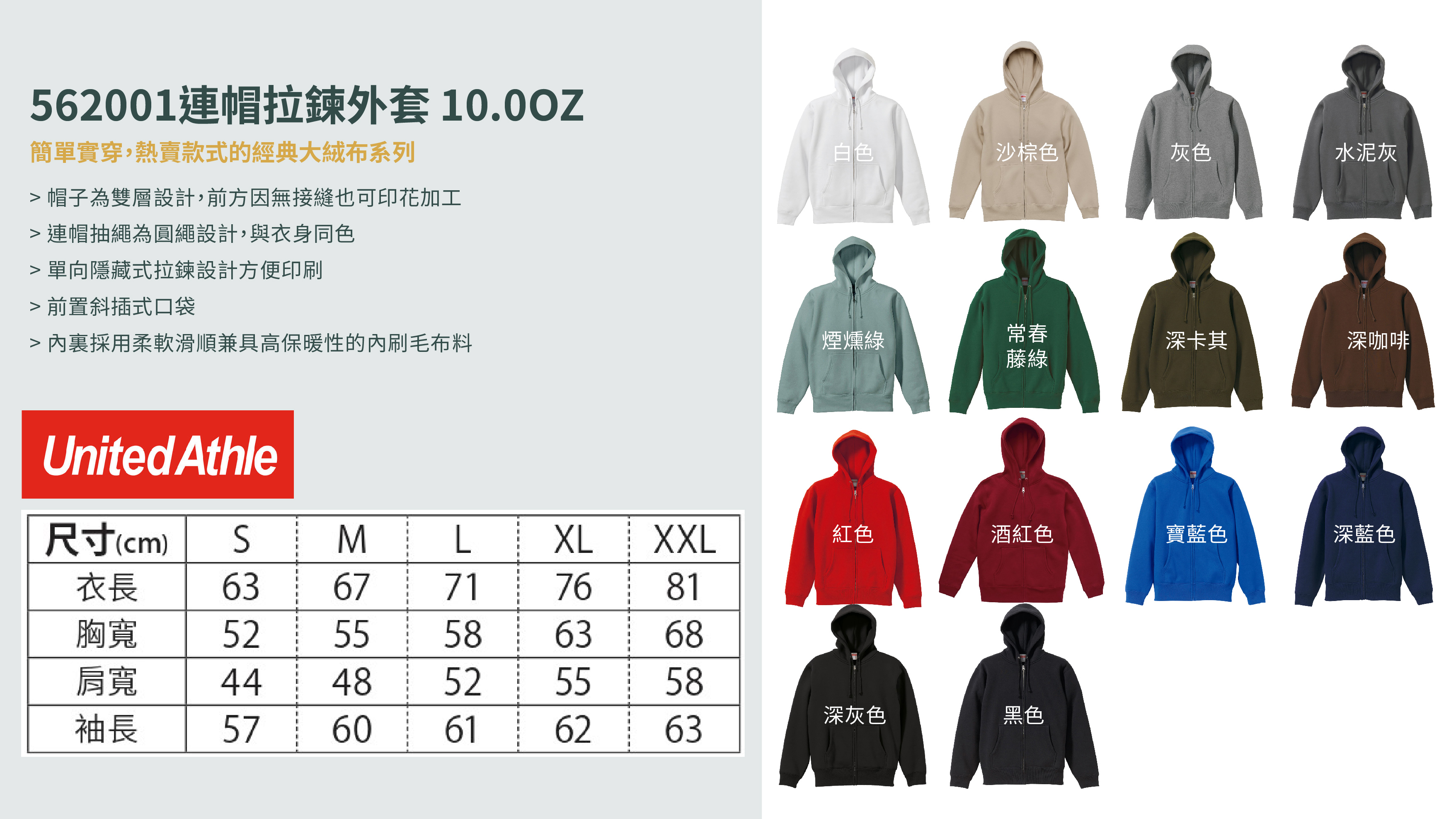 United Athle - 562001連帽拉鍊外套 10.0OZ